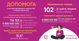 ? НАЦІОНАЛЬНА ГАРЯЧА ЛІНІЯ З ПОПЕРЕДЖЕННЯ ДОМАШНЬОГО НАСИЛЬСТВА, ТОРГІВЛІ ЛЮДЬМИ ТА ҐЕНДЕРНОЇ ДИСКРИМІНАЦІЇ: 0 (800) 500 335 або 116 123...