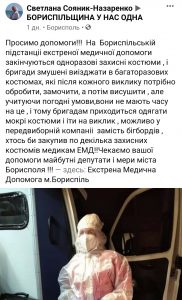 Друзі! Хто хоче долучитись допомогти бориспільським медикам у одноразових захисних костюмах на станції екстреної медичної допомоги, долучайтесь!!!