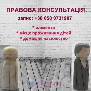 -юриста (послуги адвоката з сімейного права, консультації з питань аліментів, місця проживання дітей, насильства в сім`ї)