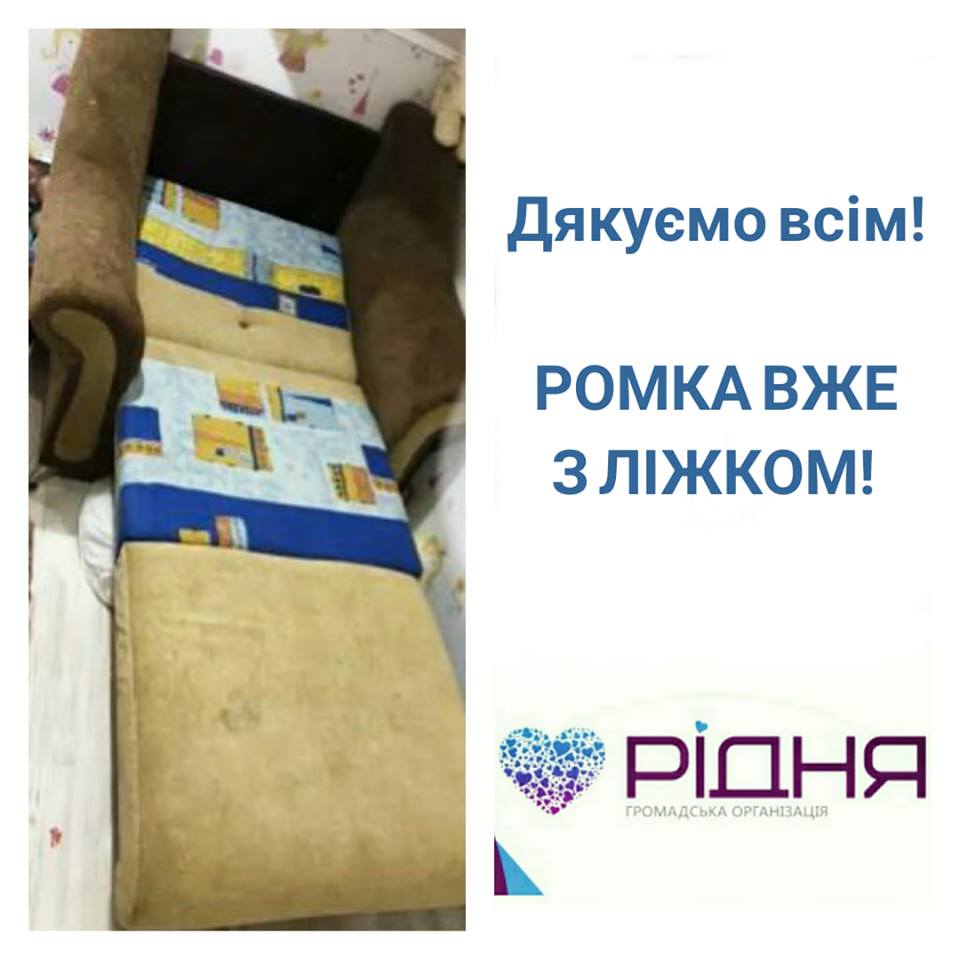 Дякуємо всім небайдужим хто приймав участь, вчора завезли крісло до родини, Ромка тепер буде спати не з мамою та молодшою сестрою, а на власному ліжку!
